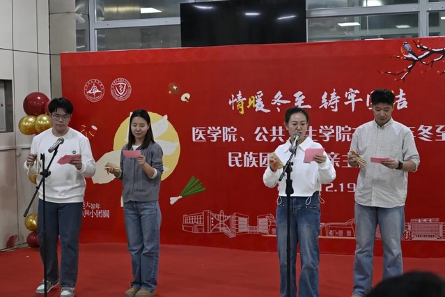 冬至阳生,岁回律转。为传承冬至民俗文化,营造温馨和谐的节日氛围,推动铸牢中华民族共同体意识,12月19日18点,医学院、公共卫生学院在南区杏林餐厅2楼成功举办“情暖冬至 铸牢团结”2025年冬至民族团结一家亲主题活动。